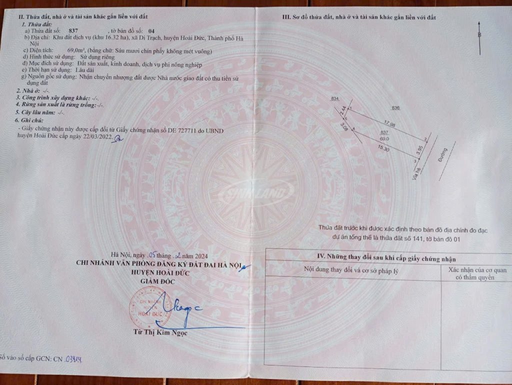 - Bán đất Di Trạch xã Hoài Đức 69 m2, giá 140 tr/m2