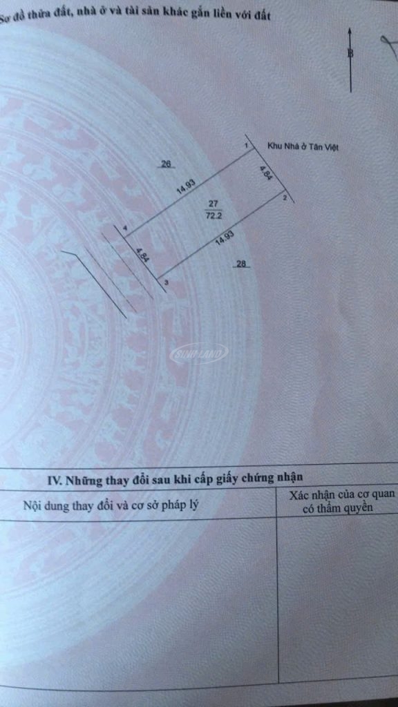 Diện tích: 72,2 m² (thửa số 27, tờ bản đồ số 26).