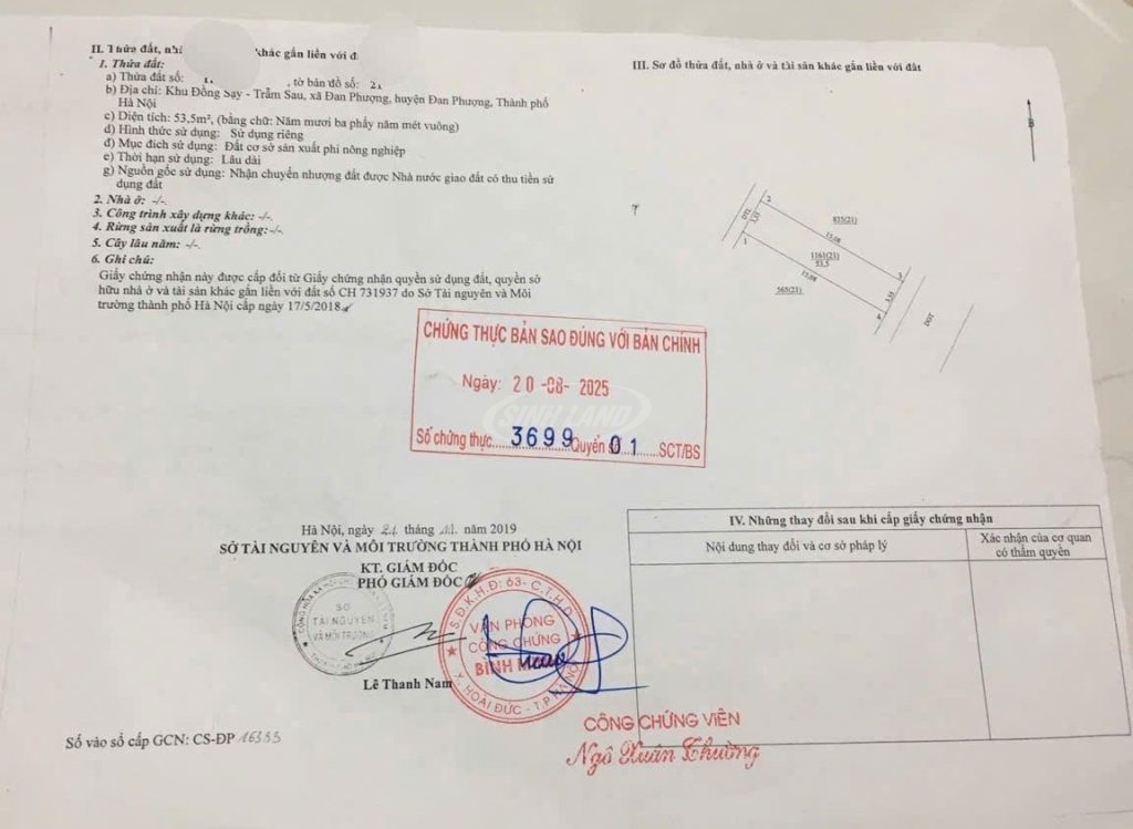 BÁN ĐẤT DỊCH VỤ ĐỒNG SẬY ĐAN PHƯỢNG – DIỆN TÍCH 53,5M², MẶT TIỀN 3,55M, HƯỚNG ĐÔNG NAM