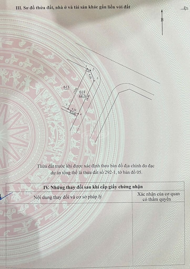 Lô đất số 614, diện tích 68 m², nằm ngay trục đường nội khu rộng rãi, đối diện mặt hồ điều hòa thoáng mát, không khí trong lành.