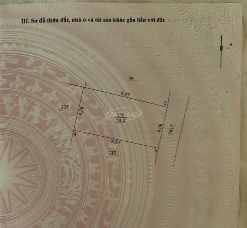 • Mặt tiền: 4.08m, thoáng, vuông vắn, dễ xây dựng, hướng đông nam.