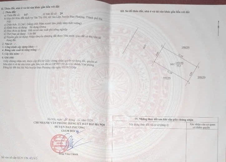 ➡️ 55m² – thửa 147, tờ bản đồ 29, mặt tiền 4.89m, hướng tây bắc.
