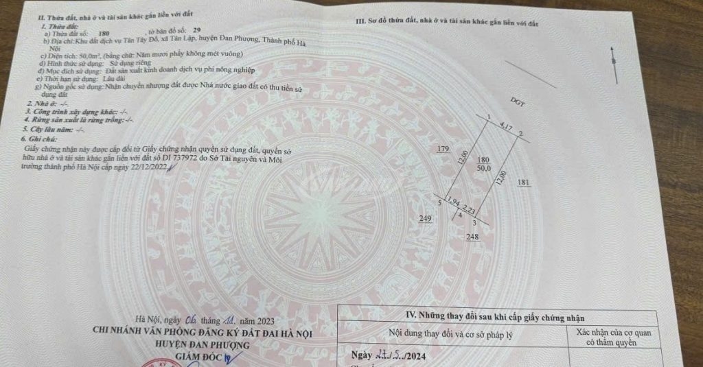➡️ 50m² – thửa 180, tờ bản đồ 29, mặt tiền 4.17m, hướng đông bắc.