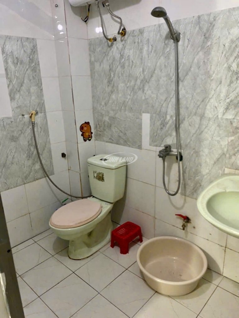 Vệ sinh khép kín, lát gạch sáng, sạch sẽ.